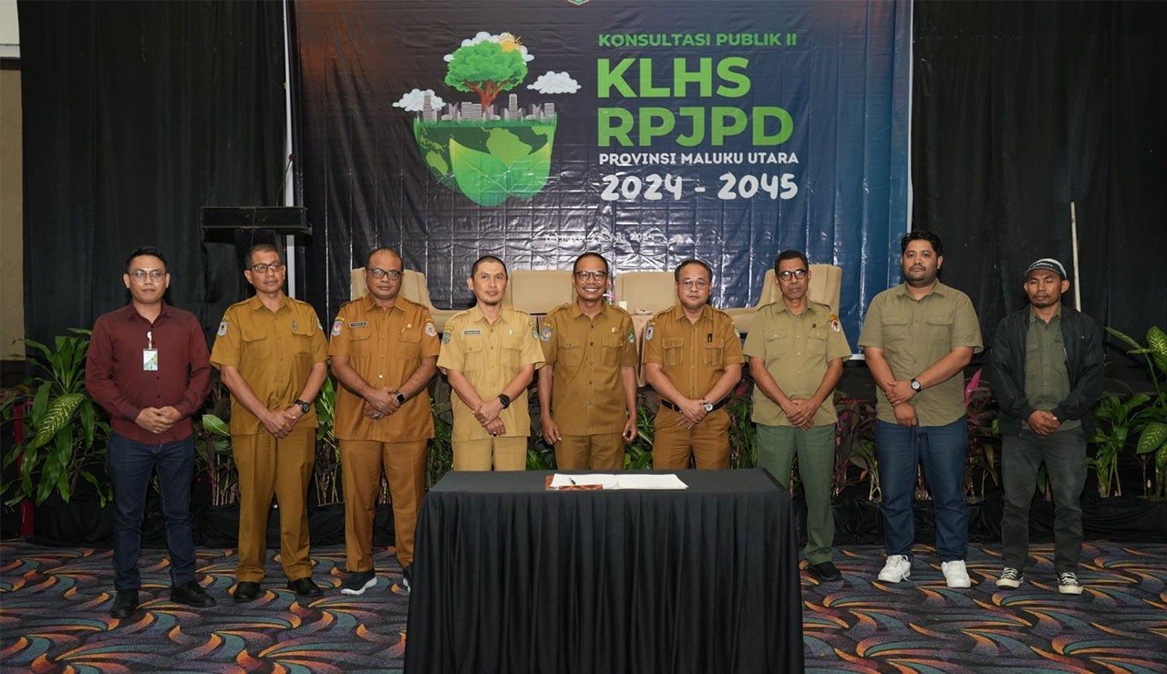 Ternate, Senin (22/07/2024) Bappeda Malut -- Forum Konsultasi Publik II dalam penyusunan dokumen Kajian Lingkungan Hidup Strategis (KLHS) untuk Rencana Pembangunan Jangka Panjang Daerah (RPJPD) Provinsi Maluku Utara (Malut) Tahun 2025-2045, yang berlangsung pada Senin (22/07/2024) di Hotel Sahid Bela Ternate, menghasilkan lima isu strategis dan 19 rekomendasi.